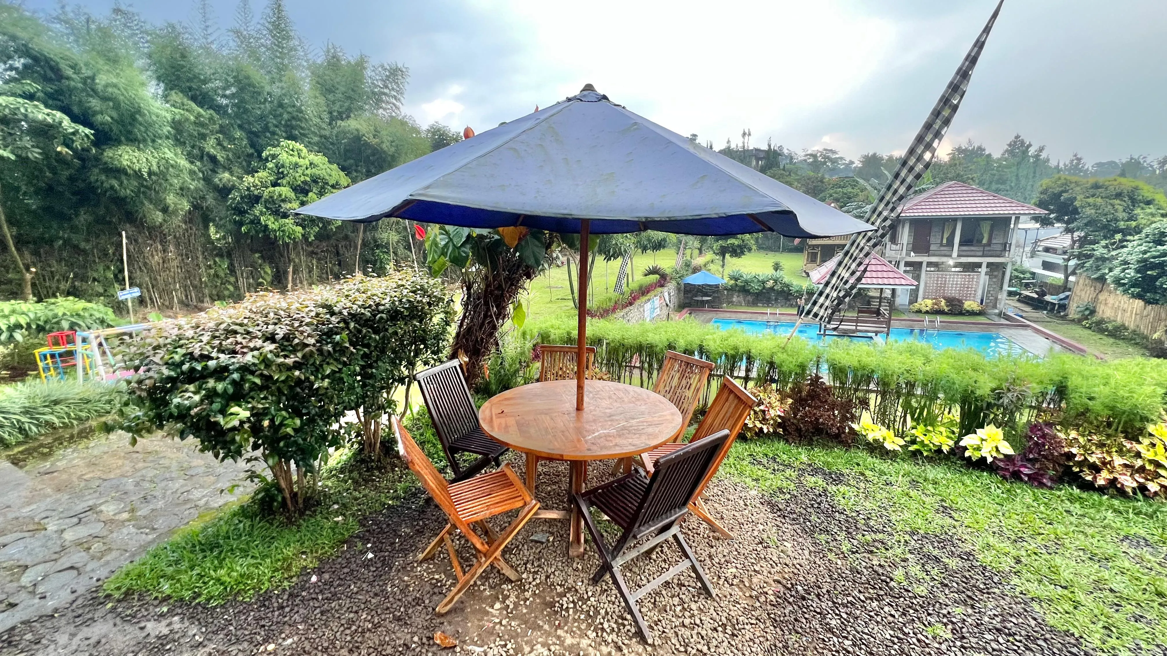 • Peraturan kolam: dilarang makan/sabun di kolam, denda 1.500.000.